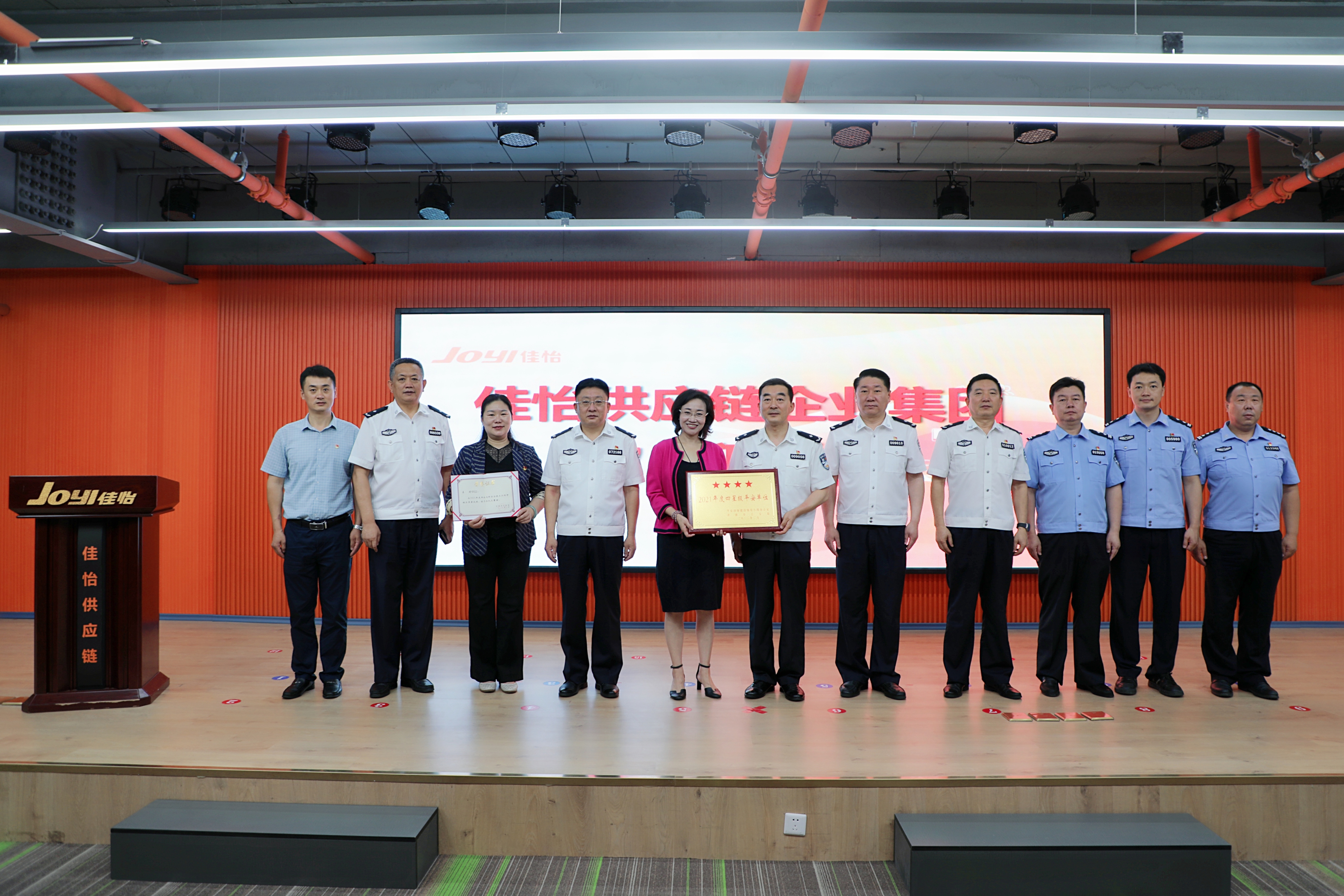 日前,佳怡集團(tuán)獲得濟(jì)南市公安局頒發(fā)的“2021年度四星級(jí)平安單位”榮譽(yù)獎(jiǎng)項(xiàng)。同時(shí),集團(tuán)副董事長(zhǎng)王珍獲得“2021年度單位內(nèi)部治安保衛(wèi)工作個(gè)人三等功”榮譽(yù)獎(jiǎng)項(xiàng)。7月21日,濟(jì)南市公安局副政委鄭宏、濟(jì)南市公安局一級(jí)高級(jí)警長(zhǎng)劉西茂、歷城區(qū)公安分局政委王志棟、物流寄遞犯罪偵查支隊(duì)支隊(duì)長(zhǎng)單金文一行蒞臨佳怡供應(yīng)鏈企業(yè)集團(tuán)調(diào)研并頒獎(jiǎng)。集團(tuán)董事長(zhǎng)孫倩、副董事長(zhǎng)王珍、辦公室總監(jiān)宋明遠(yuǎn)等陪同。