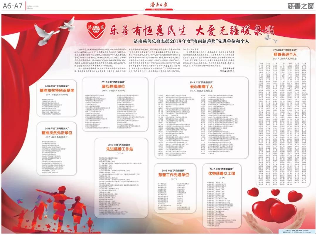 為大力弘揚(yáng)慈善精神,激發(fā)全社會(huì)支持和參與慈善的熱情,促進(jìn)濟(jì)南慈善事業(yè)持續(xù)健康發(fā)展,經(jīng)各區(qū)縣、相關(guān)單位層層推薦和科學(xué)評(píng)審確定。5月23日,愛(ài)暖泉城,濟(jì)南市慈善總會(huì)隆重表彰2018年度“濟(jì)南慈善獎(jiǎng)”先進(jìn)單位和個(gè)人。佳怡供應(yīng)鏈企業(yè)集團(tuán)董事長(zhǎng)孫倩女士榮獲“2018年度濟(jì)南慈善獎(jiǎng)愛(ài)心捐贈(zèng)個(gè)人獎(jiǎng)”。