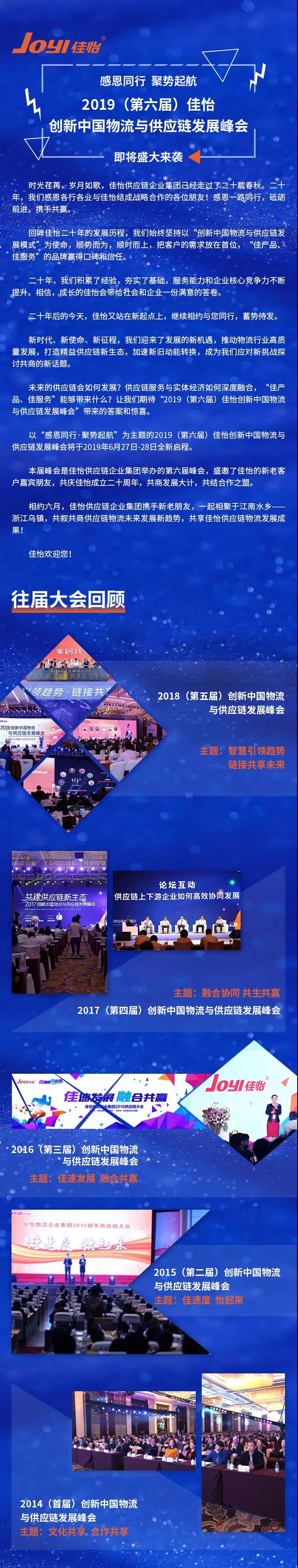 感恩同行·聚勢起航——2019(第六屆)佳怡創(chuàng)新中國物流與供應(yīng)鏈發(fā)展峰會即將盛大來襲